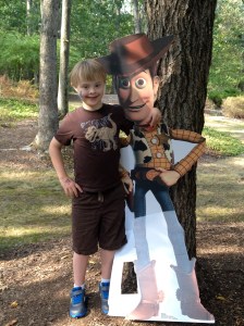 The next step is ACTIVITIES. I start to make a list of all the activities I can imagine at a carnival while I’m thinking of the items we have around the house that we can utilize for these activities.So, I know we have miniature golf, I know we have horse-shoes and lawn darts, I know we have ladder-ball. Then I hunt around in the basement, garage and playroom for items that can generate ideas for additional activities. I find Toss Across. I find a magnetic fishing game. A life-size, card-board, character cut-out for photo ops. I add those to the list of activities. Then I come across water balloons. What could we do with that. I guess in celebration of the fact that daddy “works” and mommy doesn’t, we could blindfold daddy and let the kids throw water balloons at him. That makes me smile. This is getting fun.