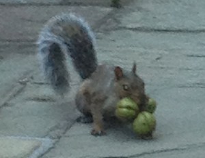 Not only do I have trouble getting them to eat what’s good for them, they also overload on the bad stuff. I understand we do live in a world of excess now. Everything is super-sized. Even the squirrels in my yard have gone crazy with that. I took this picture of a certain squirrel, on my patio, carrying not one but three nuts in his mouth at one time – there are a plethora of jokes I could insert here but I’m sure you’ll appreciate my refraining from doing so. With my kids, they start off with asking for one cookie, but then they come back and ask for two more. But it doesn’t stop there, they follow you, from room to room, “just one more, just one more, just one more”. Eventually, I hate to say it, but you give in – just to get the voices to stop. I call it temporary insanity and it just might be. I know it’s not right. I’m in charge here – that’s the mantra that I chant to myself in the mirror every day. And as soon as I start believing that, we might actually get this problem solved.